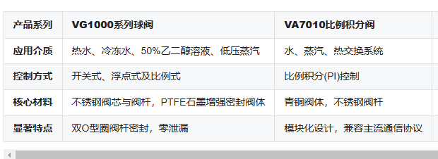 表:江森自控調節閥主要產品系列及特點